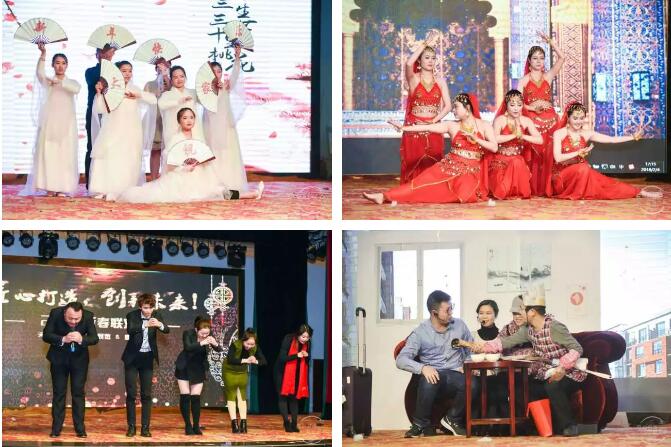 新春联欢晚会上,各公司、各部门带来了精彩纷呈的表演,舞蹈类节目有《C哩》、《火柴人荧光舞》、《孔子之书简舞》、《西域传说》、《三生三世十里桃花》、《手鼓舞》;小品类节目有《人狗情未了》、《蠢萌兄弟回家》、《老同学》、《这就是家》、《天一争霸赛》;歌曲类节目有《演员》、《那些花儿》;魔术类节目《魔术合集》······充分展现了员工的多才多艺以及激情与活力。其中市场部上演的小品《蠢萌兄弟回家》在本次春节联欢晚会上获得了一等奖。除此之外,穿插在节目中的互动节目和抽奖活动更是让晚会现场互动连连,热闹非凡。